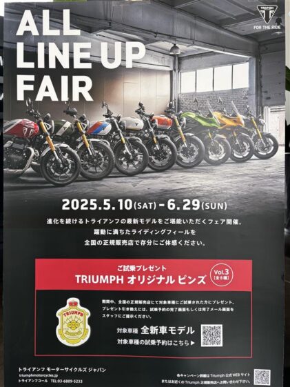 ご試乗いただいた方にトライアンフオリジナルピンズをプレゼント!