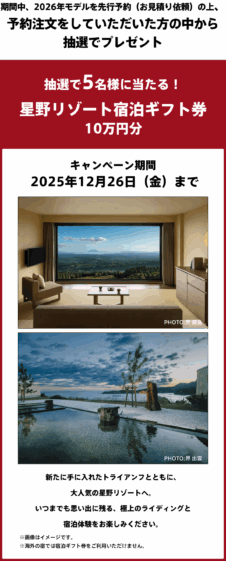 12月26日(金)まで:2026年モデル先行予約キャンペーン実施中!
