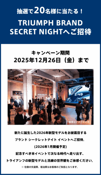 【抽選で20名様に当たる! TRIUMPH BRAND SECRET NIGHTへご招待】