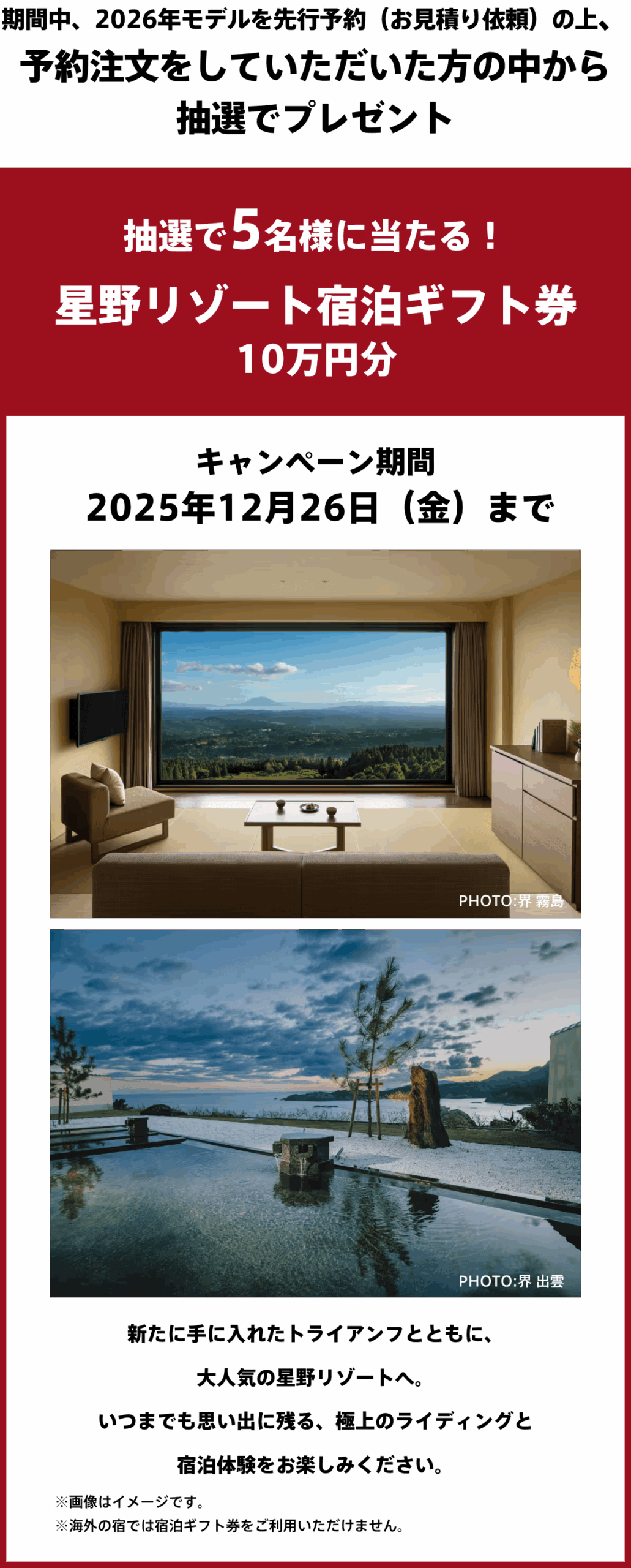 - 12月26日(金)まで:2026年モデル先行予約キャンペーン実施中!