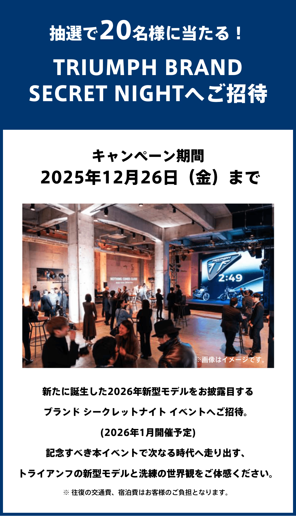 【抽選で20名様に当たる! TRIUMPH BRAND SECRET NIGHTへご招待】